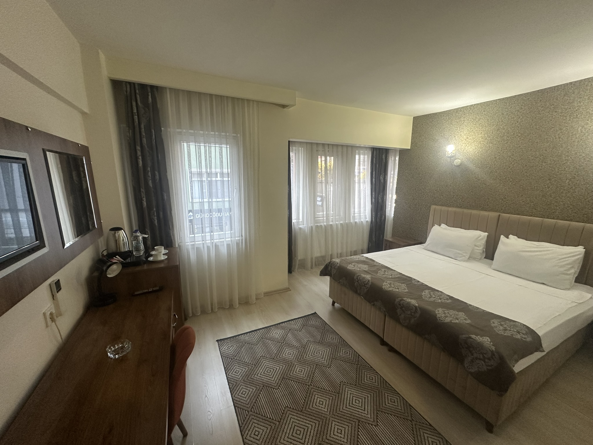 24 saat sıcak su, düzenli temizlik, açık büfe kahvaltı.